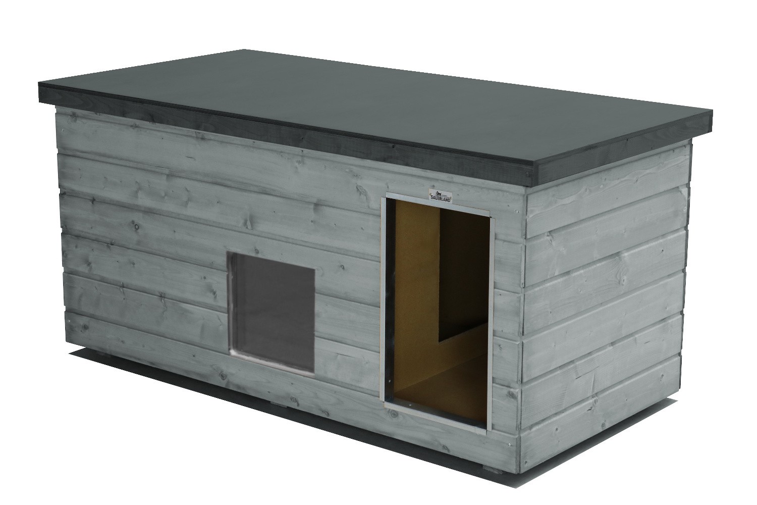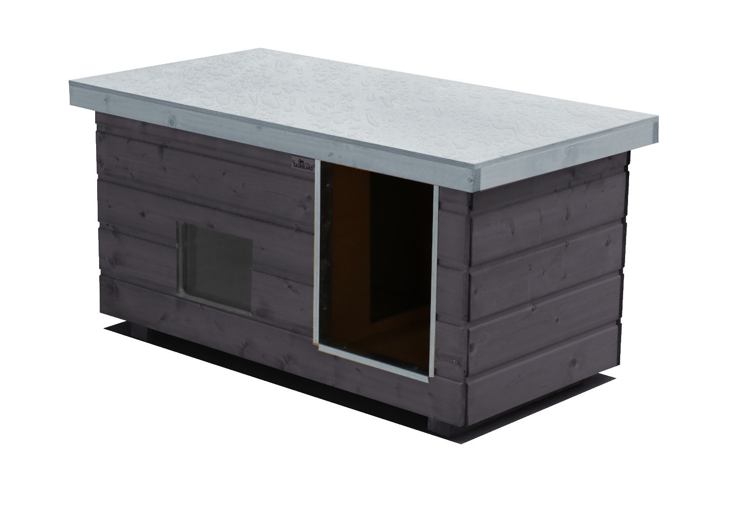 Original SAUERLAND Holz-Hundehütte mit Vorraum und Fenster, Korpus graphit/Dach ...