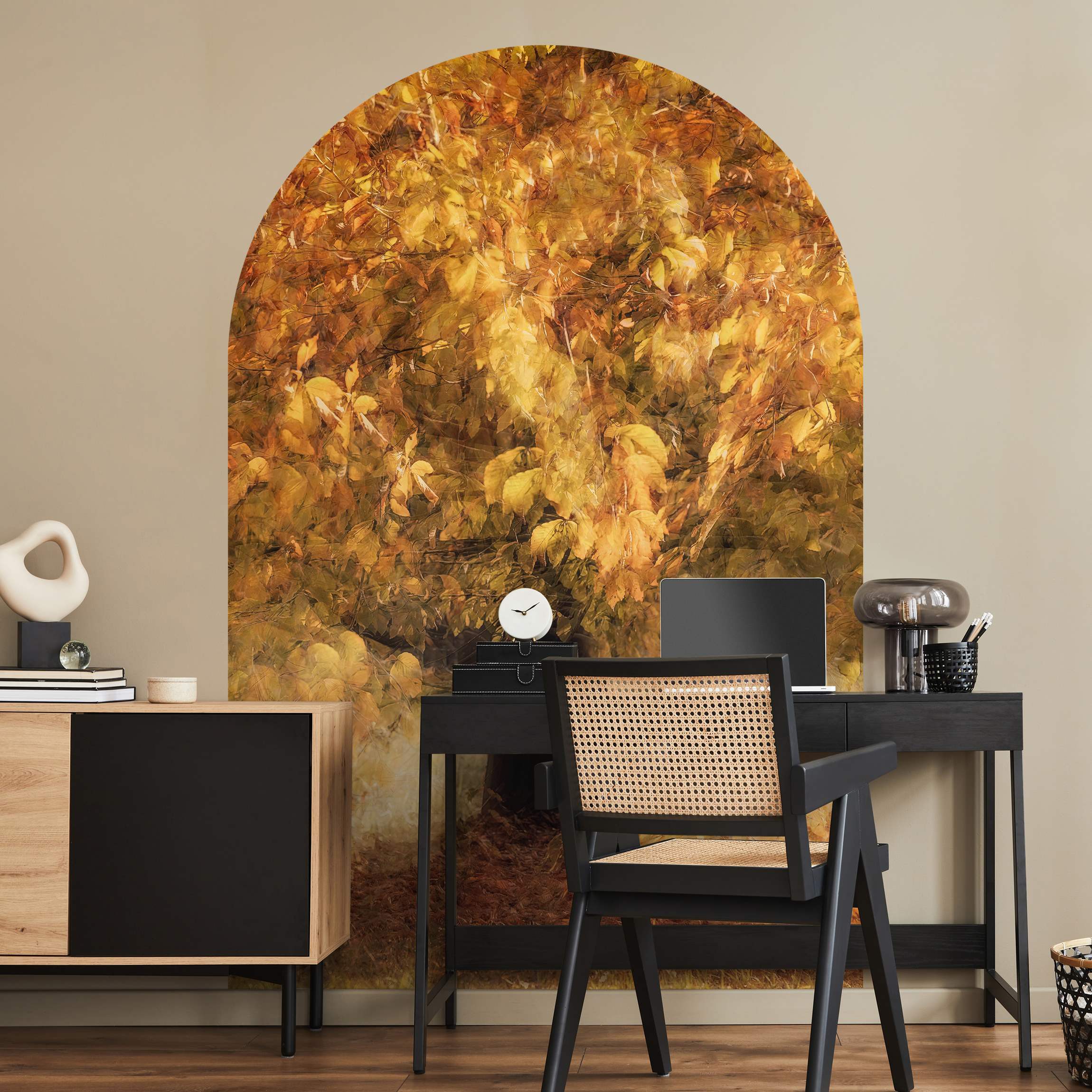 Rundbogen Tapete Verträumter Baum im Herbst
